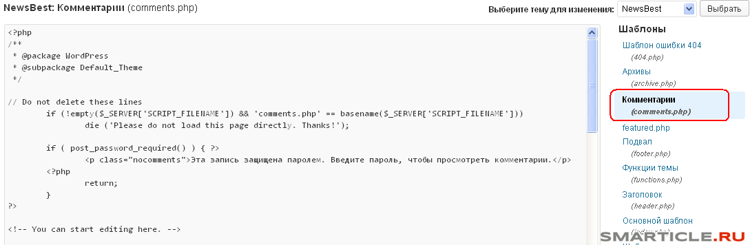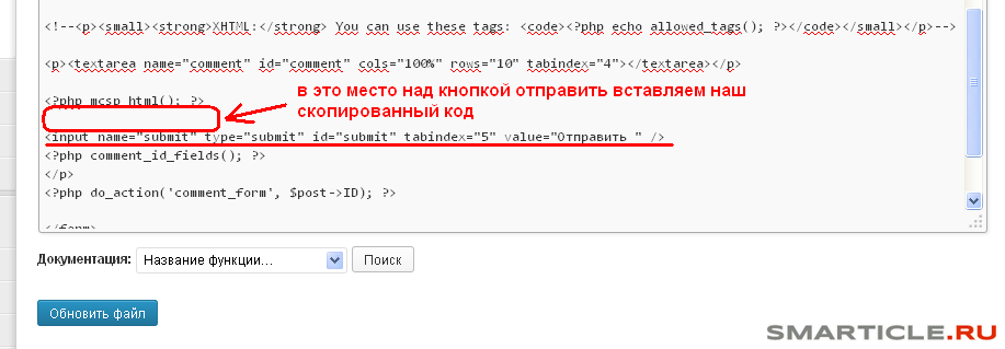 Вставлять этот код будем в странице с комментариями. (Все картинки кликабельны)