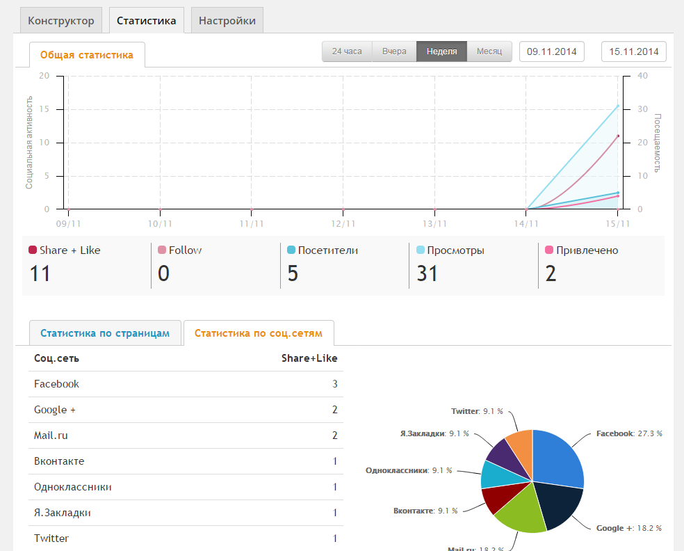 К тому же, счетчики кнопок блока «Поделиться» показывают общее количество лайков, включая те, которые были перепощены, то есть даже тогда, если человек поделился статьей не только с вашего сайта, но и с самой социальной сети.
