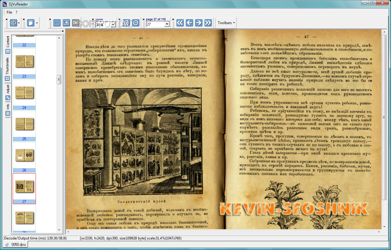 Она позволяет открывать, читать и редактировать файлы в формате DjVu. Отлично настраивается в плане яркости, масштабирования, имеет возможность создавать закладки и печатать выбранный документ.