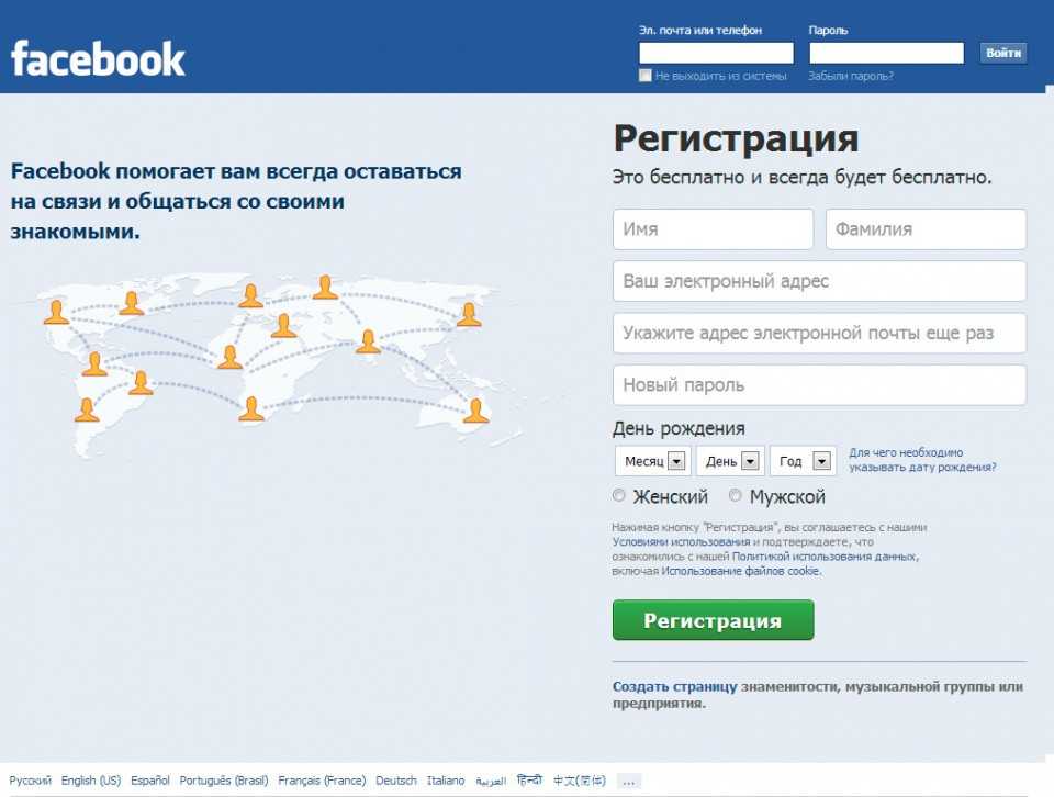 Фейсбук социальная сеть — вход на которую с нового устройства всегда предполагает ввод следующих данных: