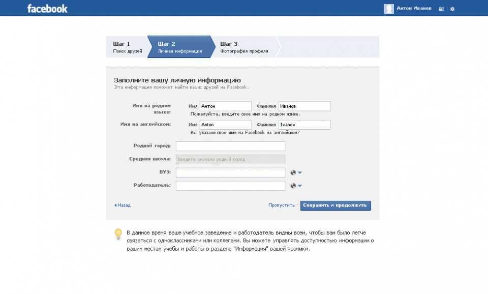 Чтобы быстрее начать ориентироваться при создании своей страницы появляются специальные подсказки, они помогут вам лучше понять данную социальную сеть.