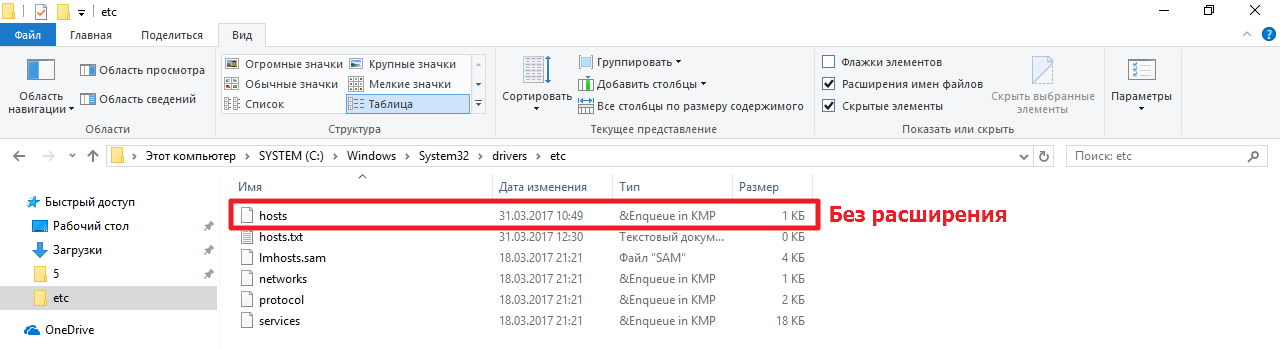 По умолчанию файл hosts располагается в папке C:\Windows\System32\drivers\etc. Но, посетив эту папку, вы можете запутаться. Дело в том, что в ней могут находиться ещё несколько файлов с похожими названиями, но с другими расширениями (например, .sam, .txt). У файла hosts расширения нет! Для определения правильного файла сделайте следующее:
