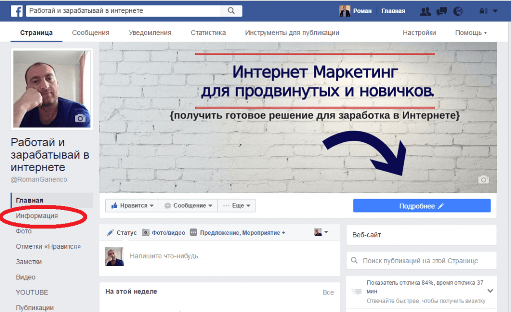 Не забудьте заполнить раздел «Информация», там должны быть ваши данные, описание страницы, ваши сайты — ОБЯЗАТЕЛЬНО !