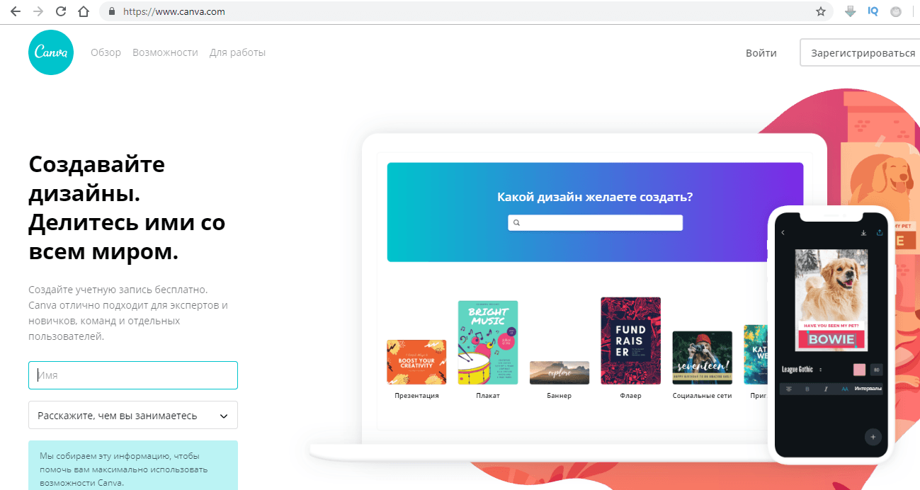 Этот сервис вы можете использовать чтобы создавать обложки для ютуб-канала, создавать качаственые изображения для постов в фейсбуке и.т.д.