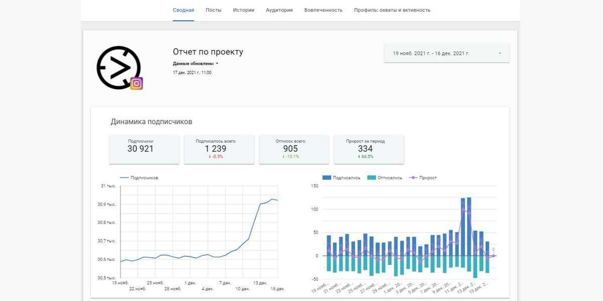 В дашбордах DataFan есть информация по аудитории, постам, вовлеченности, динамике подписчиков – все в удобном автоматическом дашборде