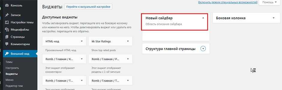 ‘Область описание сайдбара’ — описание сайдбара, выводится под названием сайдбара;