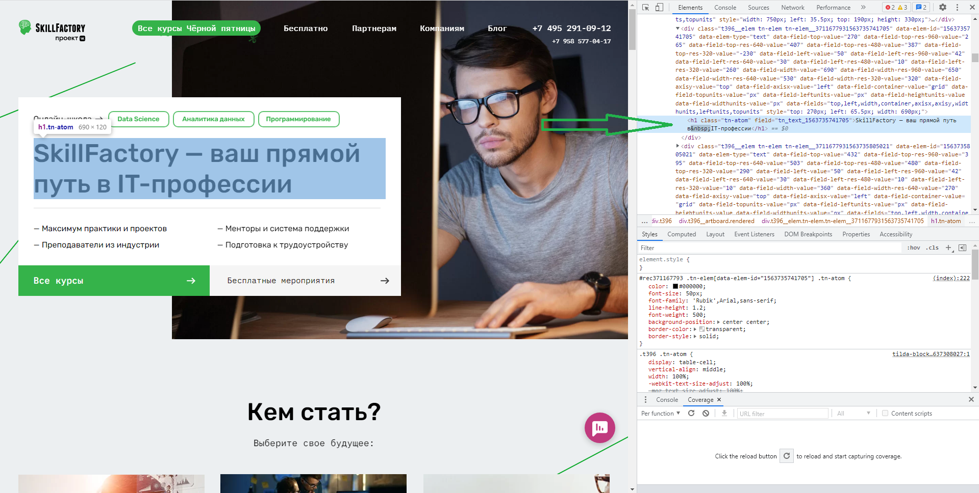 Любое правило можно отредактировать, а размеры элементов менять прямо в блоке с метрикой. Например, переопределим значение размера шрифта, и результат сразу появится на экране.