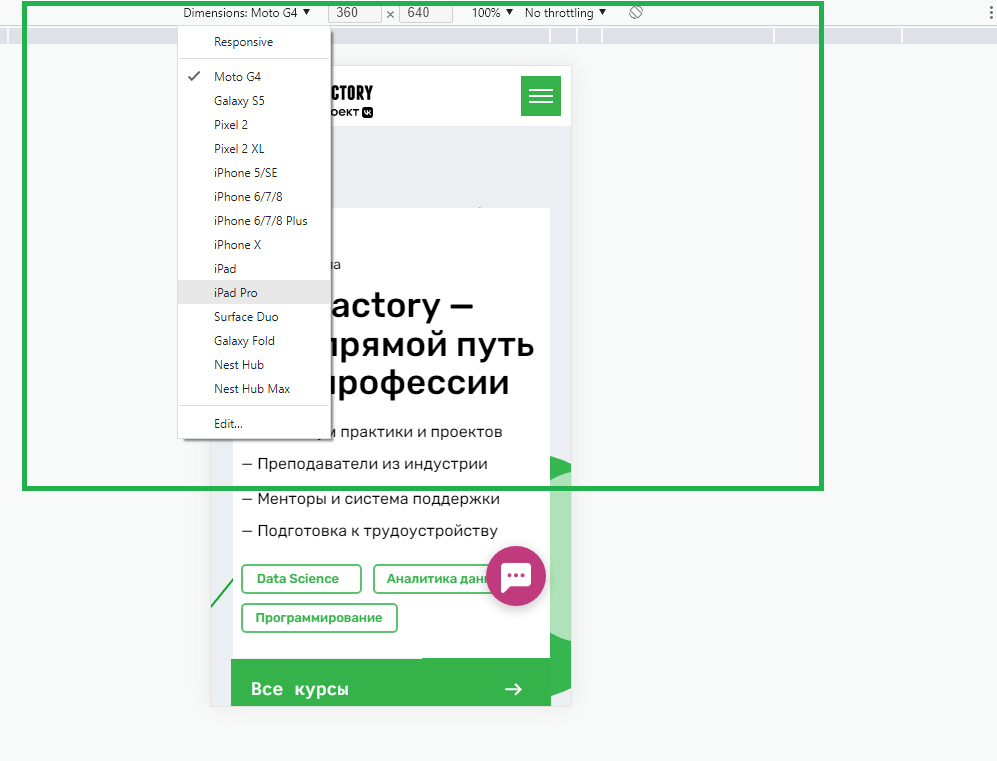 Мобильные устройства часто имеют ограничения сети и ЦП. Проверьте, как быстро загружается страница и как она реагирует на различные скорости интернета и ЦП.