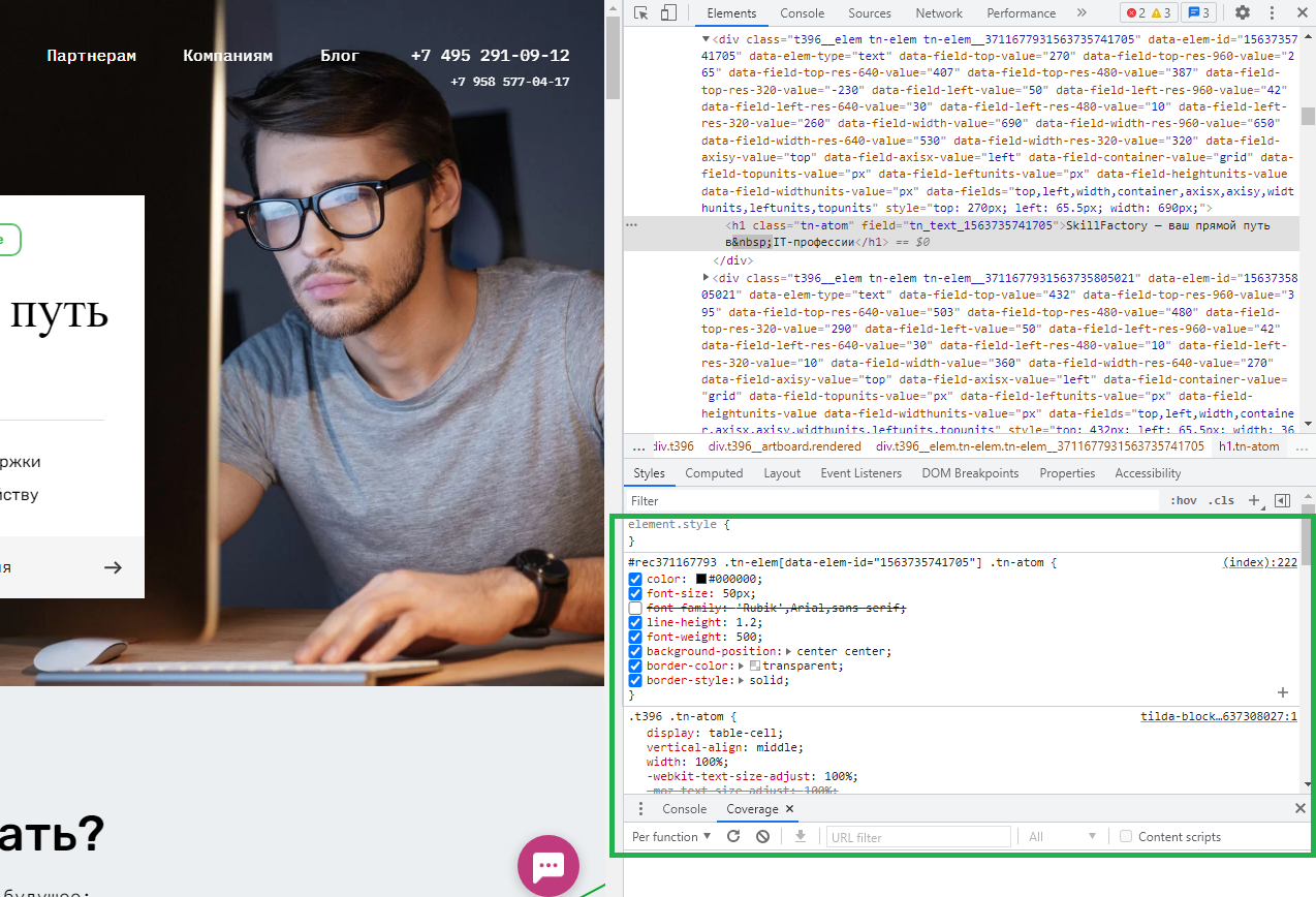 - инспектирование и редактирование CSS-стилей