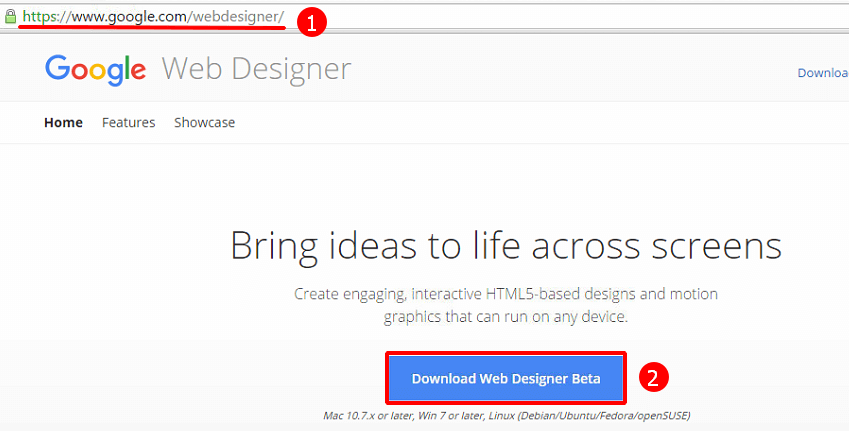 На главной странице нажмите на кнопку «Download Web Designer Beta».