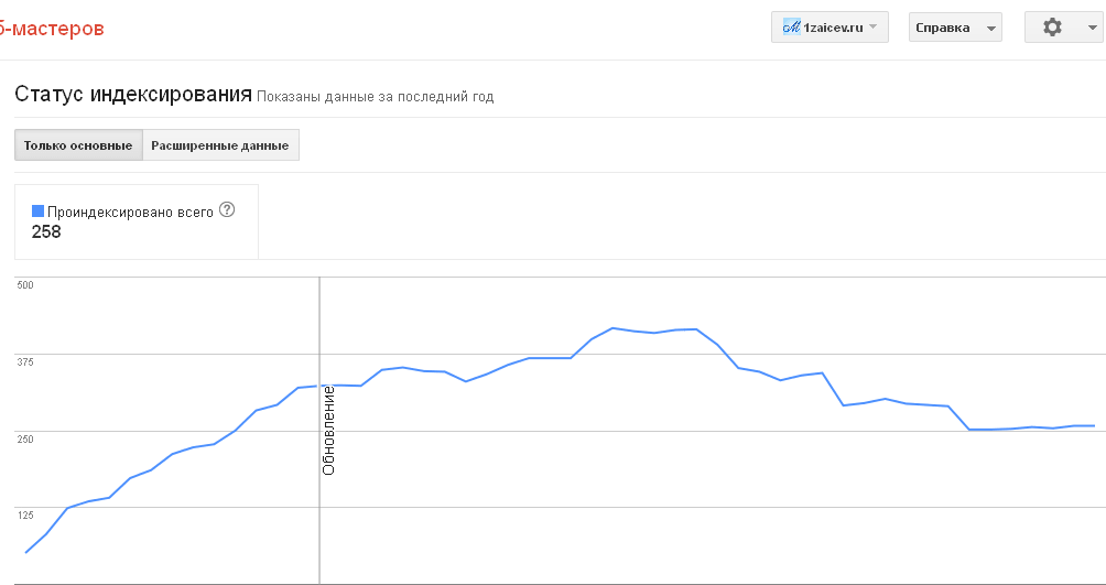 На первый взгляд может показаться, что это простой график индексирования сайта. Но на само деле — это очень важный и полезный инструмент, отражающий положение дел с индексацией вашего сайта. Резкий рост или падение на графике свидетельствует о возможных проблемах с индексацией сайта (дубли страниц, фильтры или чего похуже).