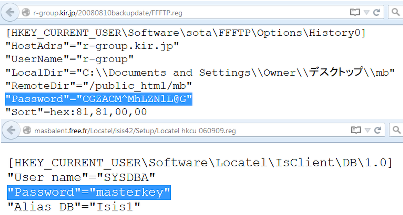 До сих пор встречаются СУБД, в которых не используется даже хеширование паролей. Конфигурационные файлы любой из них можно просто посмотреть в браузере.