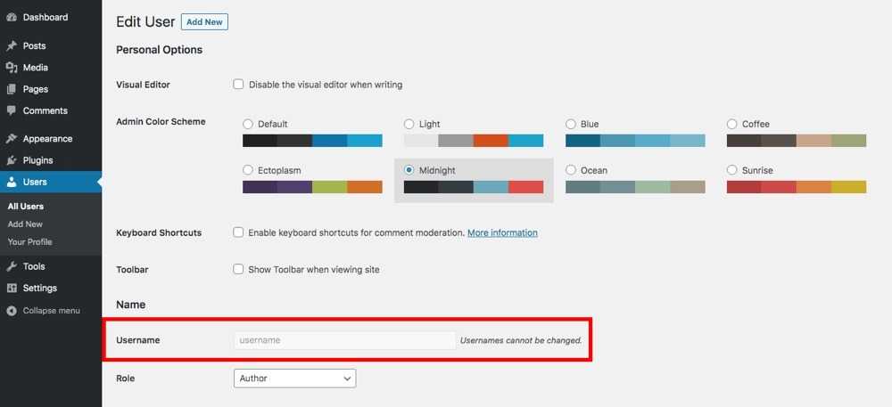 WordPress по умолчанию будет использовать имя пользователя-автора в качестве слага. Это функция, встроенная в WordPress. В примере, приведенном выше, с именем пользователя «username» ссылка на автора будет выглядеть следующим образом: