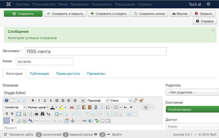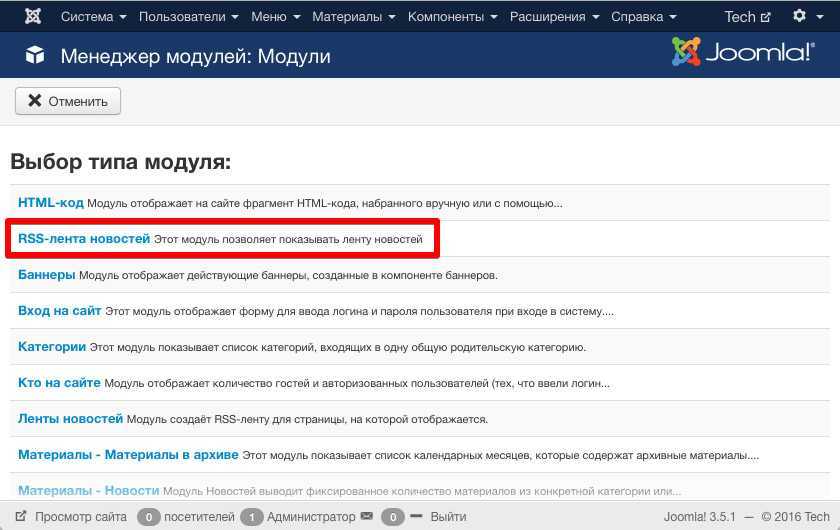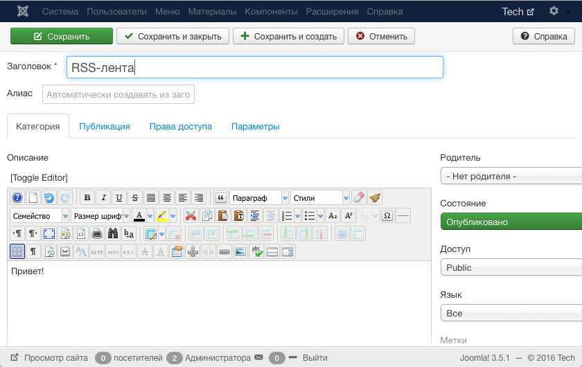 Самый простой способ создания RSS-ленты сайта на Joomla 3