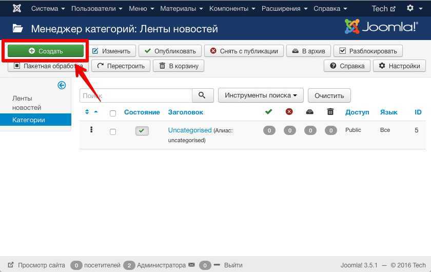 Шаг 1. Откройте панель администратора — Материалы — Менеджер категорий.