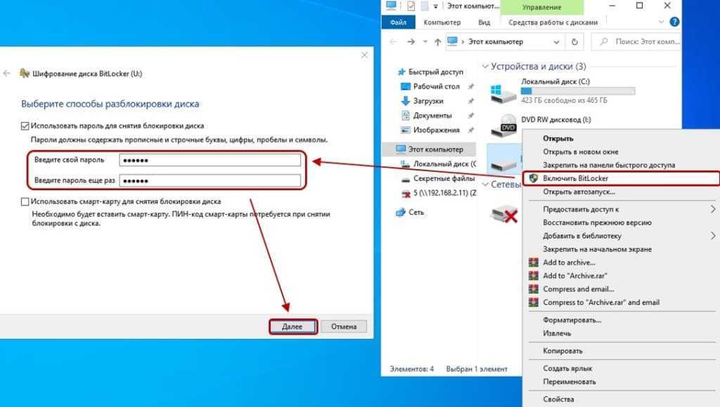 Установка пароля с помощью BitLocker
