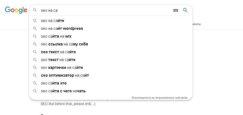 №1. Поиск ключевых слов LSI с помощью поисковых подсказок Google.