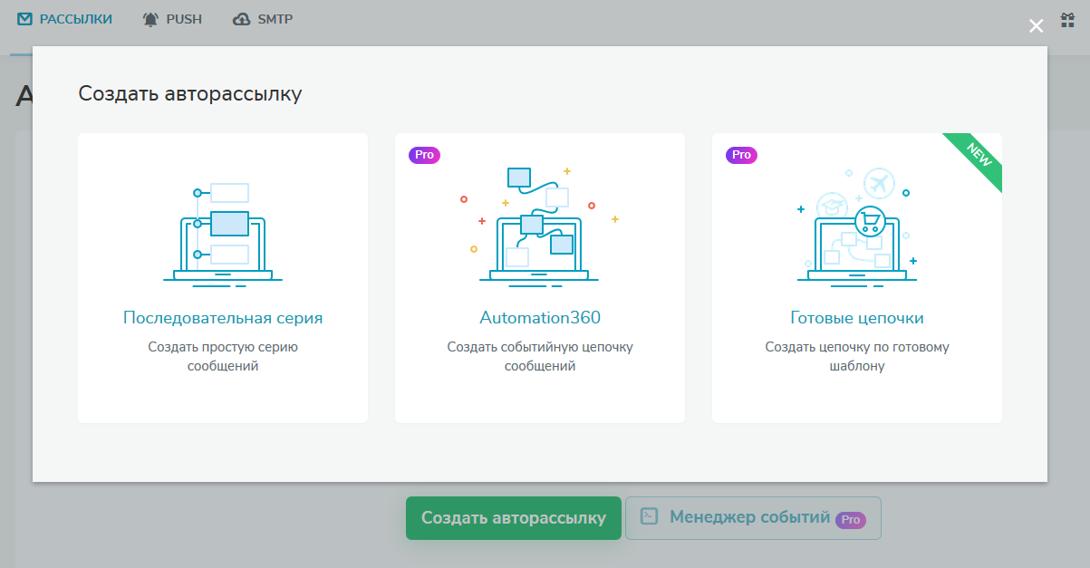 Чтобы настроить авторассылки, нужно зайти в SendPulse и выбрать раздел «Авторассылки»: