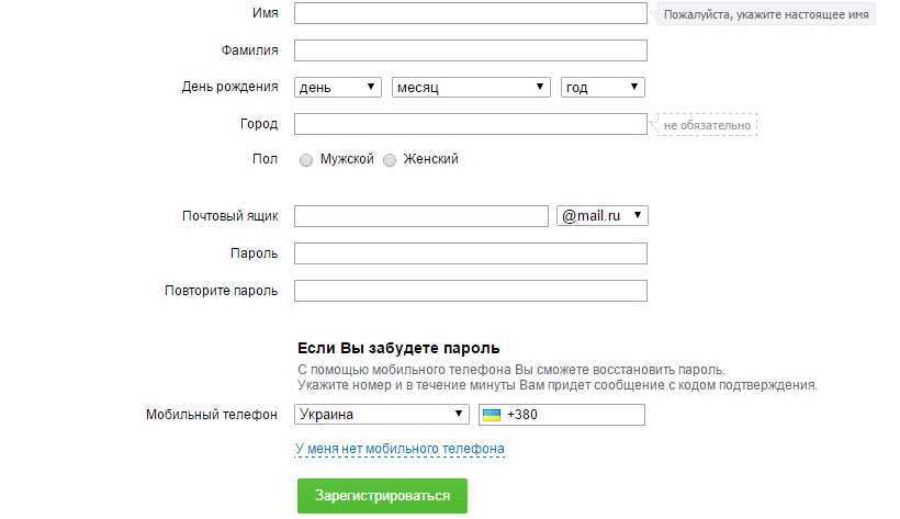 При её заполнении у юзера не должно возникнуть трудностей. Но в этой статье рассмотрен другой случай — ситуация, когда мобильный отсутствует. Компания Майл Ру продумала саму процедуру вплоть до мелочей. Поэтому пользователям с такой «проблемой» путь абсолютно открыт.