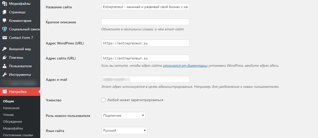 Итак, давайте посмотрим, что из настроек предлагает нам Вордпресс.