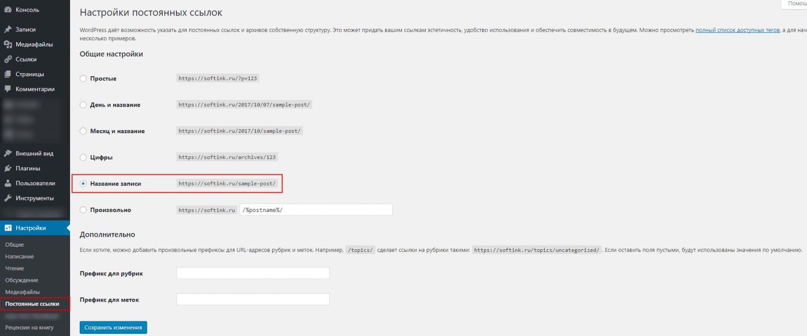 Чаще всего, такие URL-адреса используют просто нумерацию, не связанную с контентом, а пользователь не сможет понять, что он увидит на странице, просмотрев URL-адрес. Использование SEO-структуры ссылки увеличит шансы на улучшение позиций в результатах поиска. Чтобы проверить и обновить структуру ссылок на WordPress потребуется перейти на страницу настроек «Постоянные ссылки» и выбрать опцию «Название записи», нажать кнопку «Сохранить изменения»