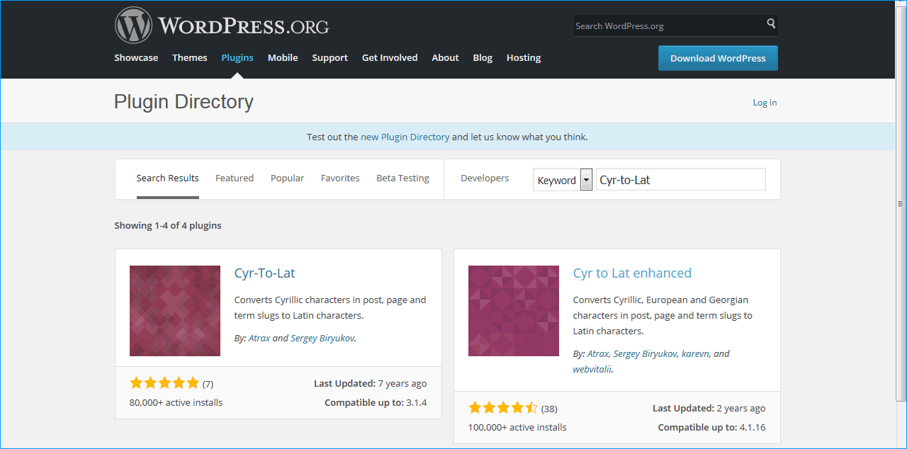 Помимо Cyr-To-Lat, можно использовать и аналоги, которые присутствуют на официальном сайте. Например, такие — WP Translitera, ACF: Rus-To-Lat, Rus-To-Lat Advanced. Установка данных плагинах похожа, поэтому останавливаться на них отдельно не имеет смысла.
