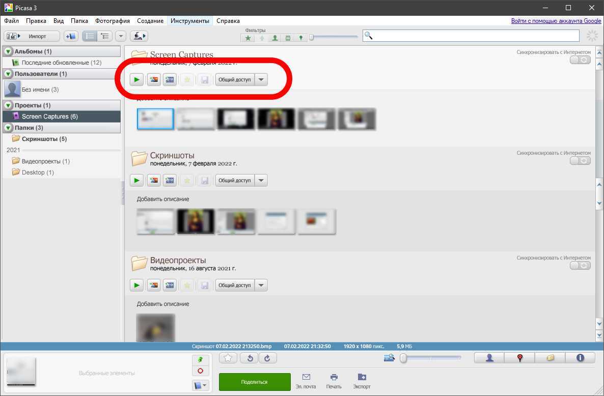 Прокручивая его, можно получить доступ ко всем изображениям в программе. Организовывать все файлы можно по отдельным папкам, альбомам и людям.