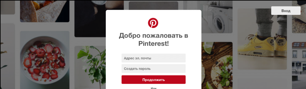 Для регистрации в Pinterest с ПК зайдите на сайт: