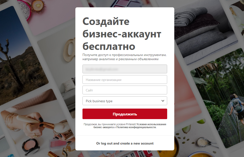 В соцсетях для просмотра контента требуется регистрация. Пинтерест не исключение. Если вы зайдете на сайт, то появится окно для создания профиля. Пока вы этого не сделаете, просматривать пины будет невозможно.