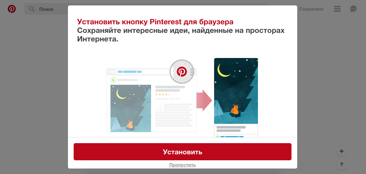Чтобы вся эта затея обрела смысл, нужно установить расширение для браузера. Кнопка Пинтерест – это кнопка на панели вашего браузера, которая позволяет сохранить на свою доску на сайте Pinterest любую картинку или даже видео с любого другого ресурса. Удобство в том, что вы в любой момент сможете вернуться на тот сайт, откуда взяли картинку – под каждым пином (картинкой) есть кнопка для перехода на источник картинки.