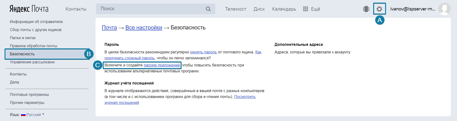Чтобы открыть веб-интерфейс для работы с почтой: