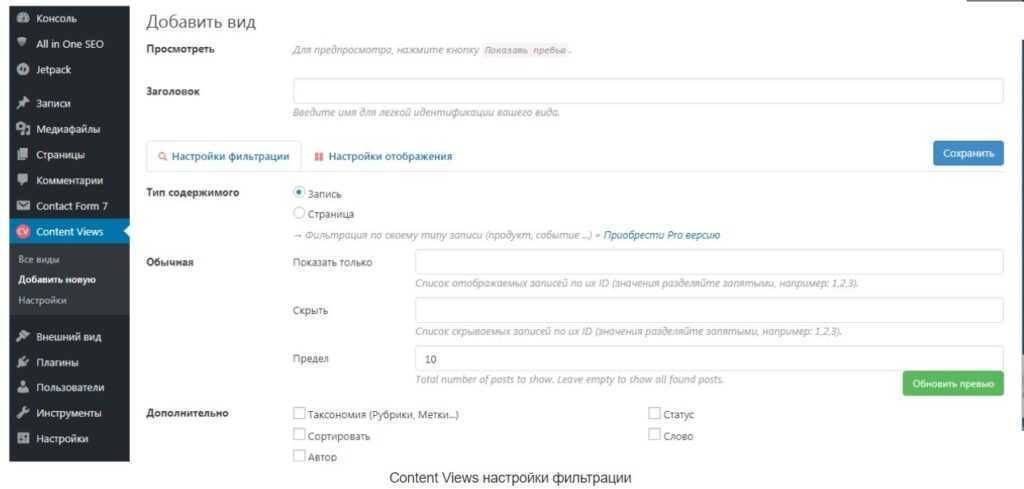 | Content Views | Достаточно высокий уровень бесплатной версии (мало что урезано), при желании можно купить Премиум. | Оказывает большую нагрузку на сайт, легким его однозначно не назовешь. |