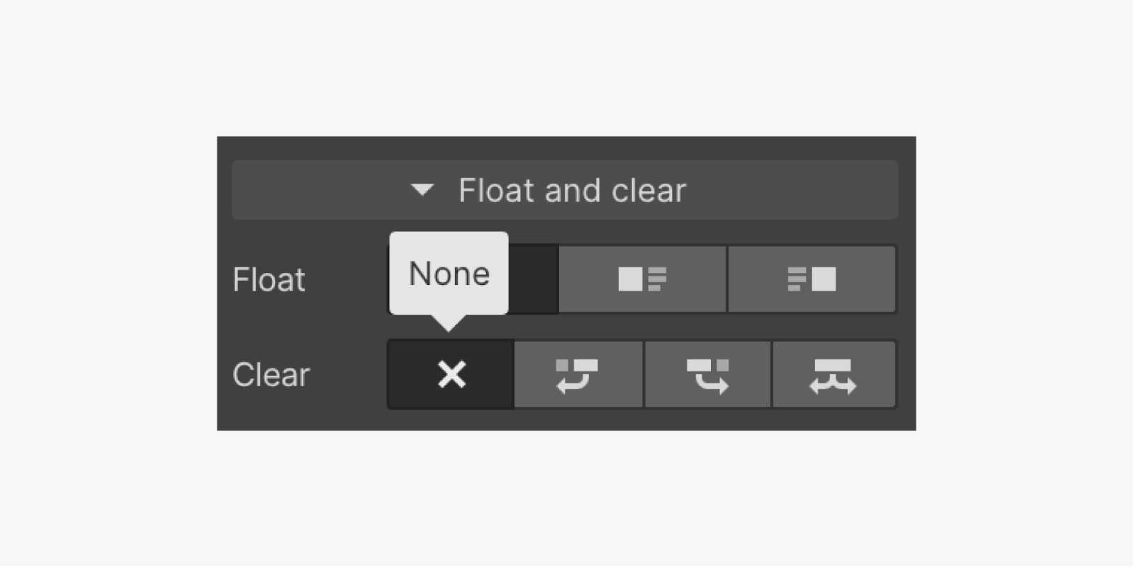 Clear none is the default setting for most elements. Elements set to clear non will stack next to or wrap around any floating element directly above it in the document flow.