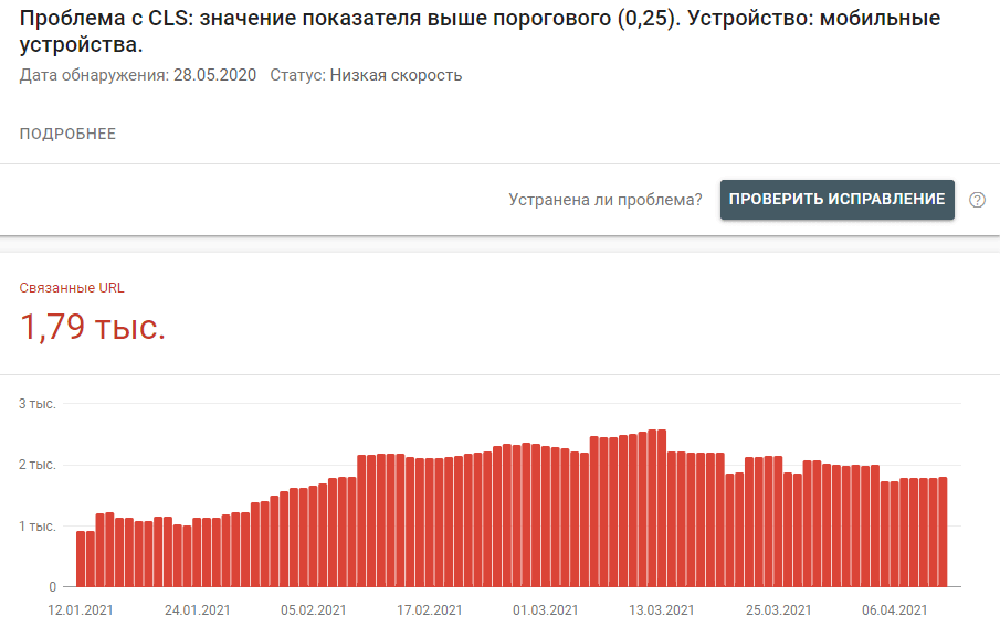 Данные по всем проблемным страницам можно найти в https:\/\/search\.google\.com\/u\/1\/search-console\/core-web-vitals (требуется авторизация. Это касается только тех сайтов, где достаточно «полевых данных». Если «полевых» данных нет, а также в GSC нет никаких ошибок, то стоит самостоятельно дополнительно проверить основные типы страниц через Google Page Speed для оценки лабораторных данных показателя CLS.