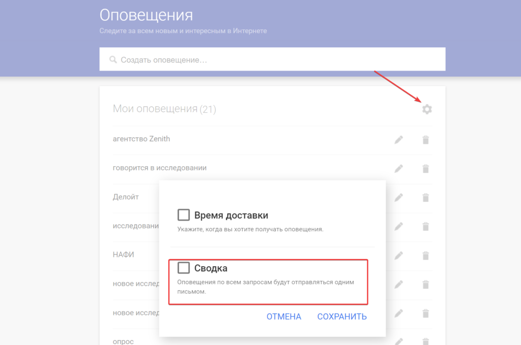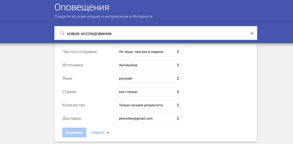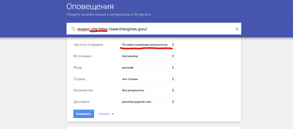 Можно настроить оповещения по определенному сайту. Например, по определенным темам на крупных новостных сайтах: