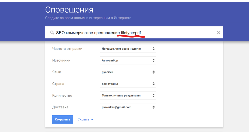 Вы же знаете, что Google занимается индексацией не только с html страницами? Поэтому, если вам вдруг захотелось почерпнуть информации в определенном типе файла, допустим, в pdf, doc или rtf, то просто воспользуйтесь данным оператором.