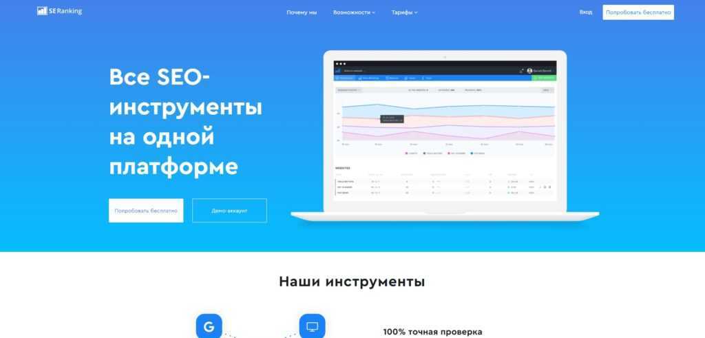 Главная страница сервиса Se Ranking