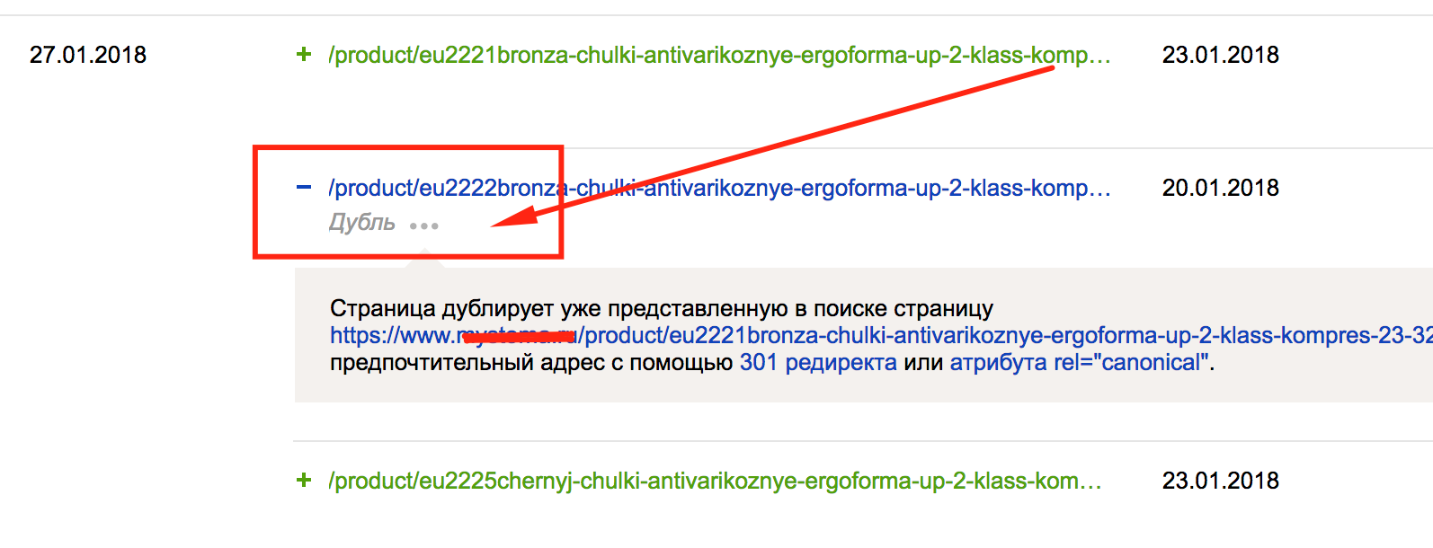 Например: поисковая система может признать дубликатами похожие карточки товаров с незначительными отличиями. Тогда необходимо переписать содержание страницы: основной контент, теги и метатеги, если они дублируются, либо такие карточки склеить с помощью атрибута rel=”canonical”. Другие рекомендации по избавлению от дубликатов страниц подробно описаны в пункте 5.