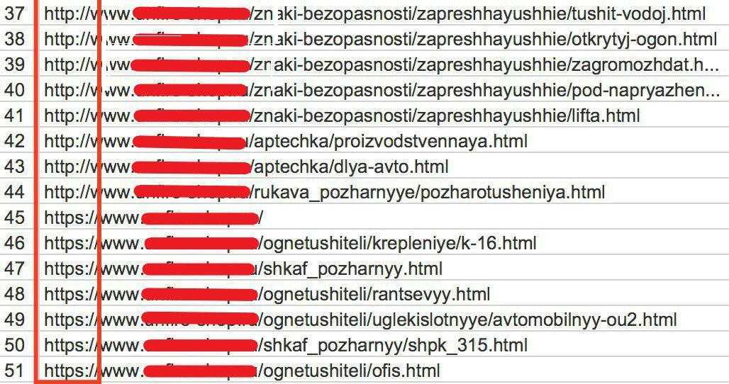 Рис. 2. Пример парсинга сайта в сервисе Screaming Frog при не склеенных зеркалах