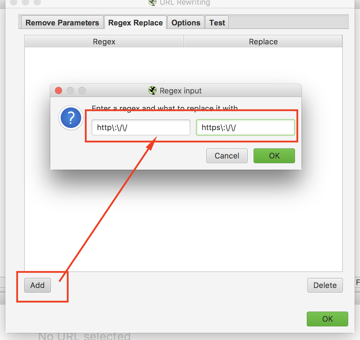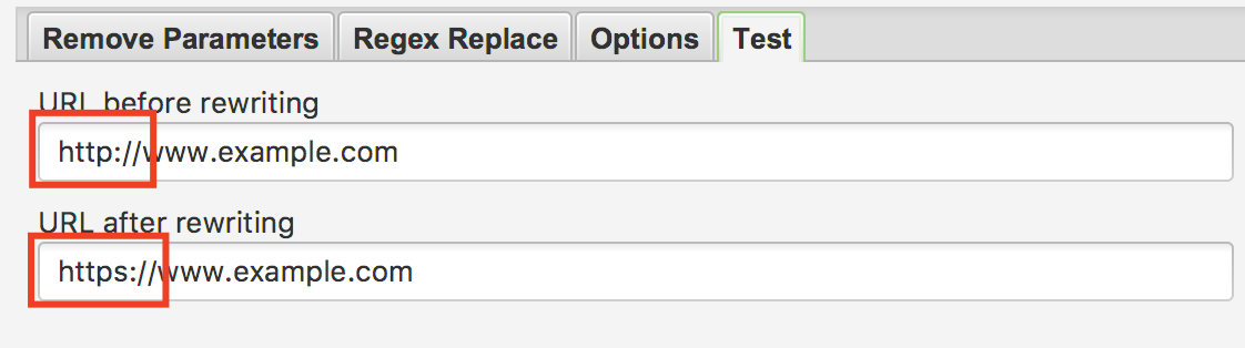 В вкладке Regex Replace создаем следующее правило (используя регулярное выражение, «говорим» сервису, как нужно склеивать зеркала, чтобы он выводил только страницы с HTTPS):